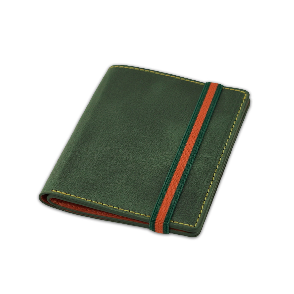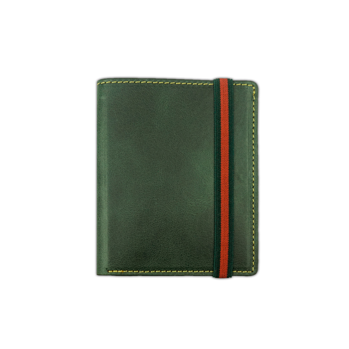 La Cartera Forest Green es una cartera de piel de vacuno 100% hecha a mano de máxima calidad. Con un diseño extra delgado, el exterior de color verde, y con una banda elástica verde y roja para cerrar la cartera y asegurar el contenido del dinero y las tarjetas de crédito. Permite en su interior hasta 12-14 tarjetas y dispone de un espacio lateral en el que guardar tus billetes.