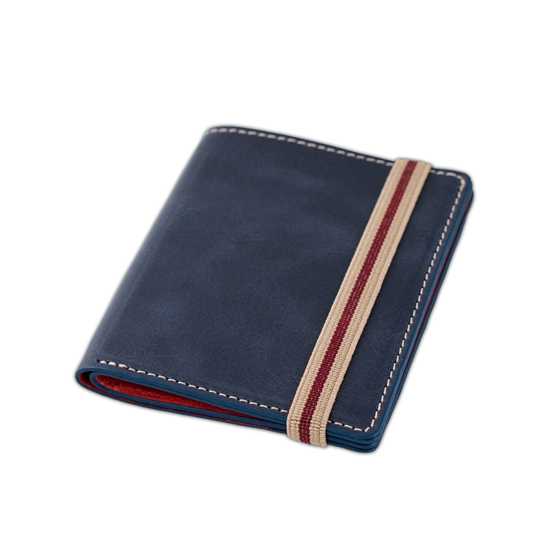 La Cartera Zafiro Beige es una cartera de piel de vacuno 100% hecha a mano de máxima calidad. Con un diseño extra delgado, el exterior de color azul marino, y con una banda elástica beige y cardinal para cerrar la cartera y asegurar el contenido del dinero y las tarjetas de crédito. Permite en su interior hasta 12-14 tarjetas y dispone de un espacio lateral en el que guardar tus billetes.